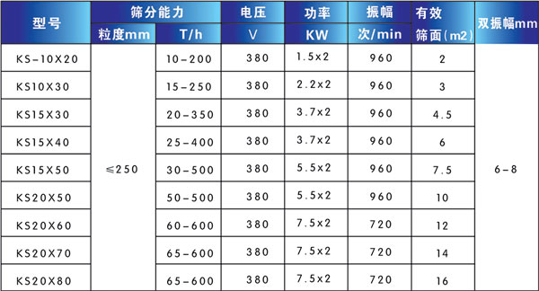 KS型系列是一種廣泛用于礦山、冶金、煤炭、電力、建材、耐火材料等行業(yè)大塊狀物及中小顆粒物料的篩分設(shè)備。